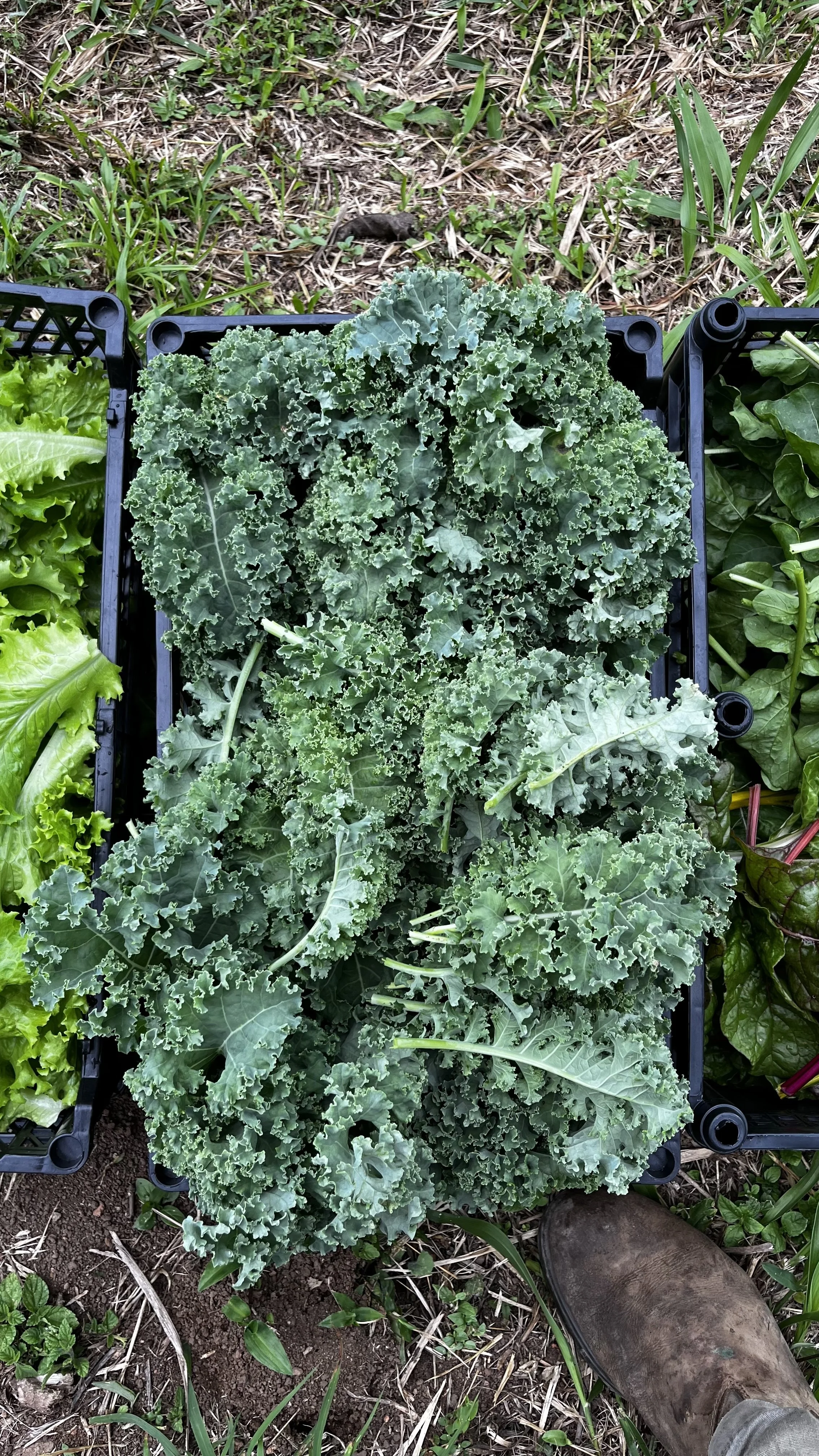 Nuestro kale verde desarrolla hojas firmes, rizadas y llenas de vida. ofreciendo un sabor intenso y ligeramente terroso, ideal tanto para preparaciones crudas como cocidas.